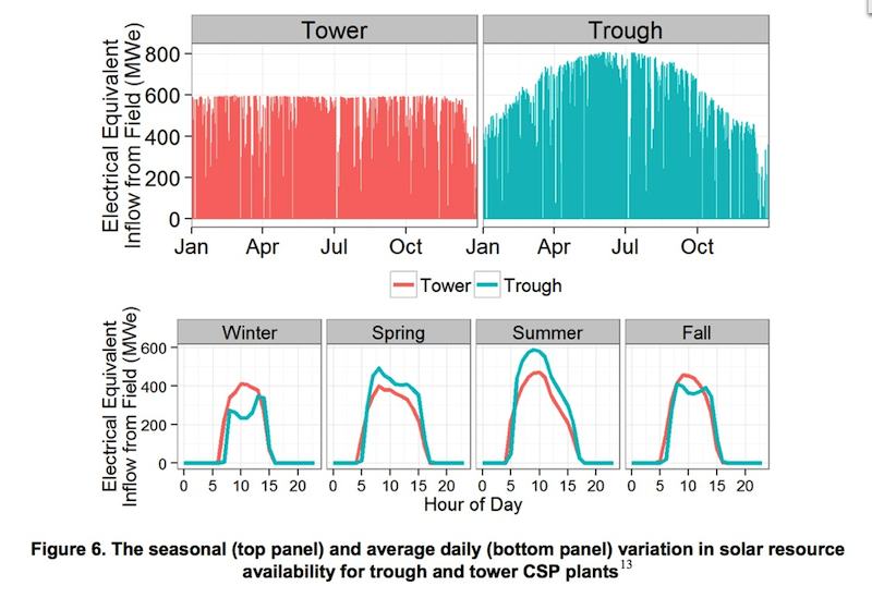 Similar value for tower and parabolic trough CSP technologies, according to NREL