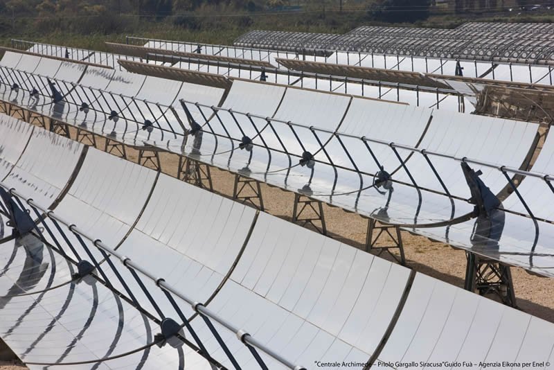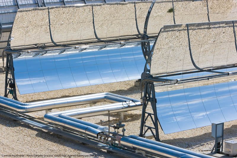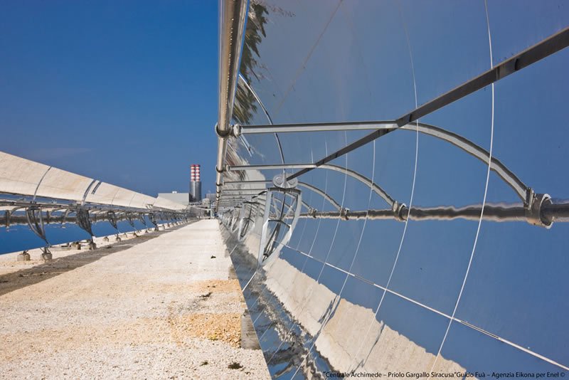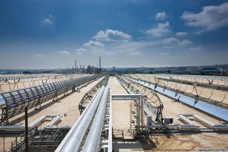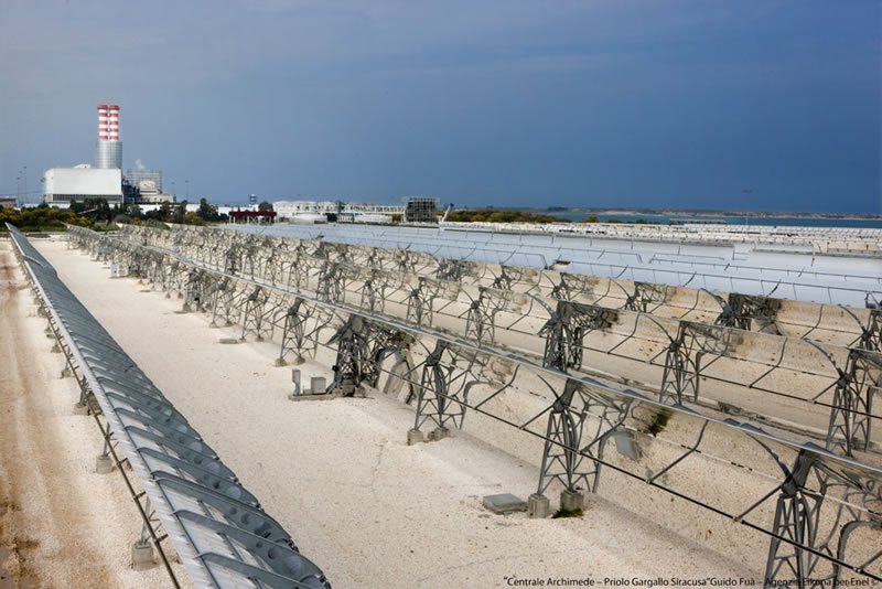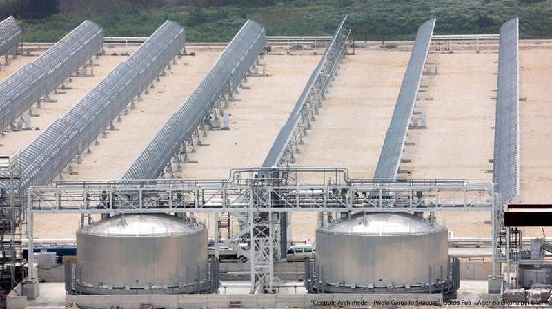 GroupGeneral InfoOwner/s: ENELTechnology: Parabolic trough - ISCCCountry: ItalyStatus: OperationalPurpose: Research & DevelopmentUsage: ElectricityPower: 5.00 MWConstruction start date: Jult 2008Start date: July, 2010Location: Priolo Gargallo, Syracuse, SicilyGeneration: 9.20 GWh TechnologySolar fieldSolar Collector Assemblies - Trough: ENEA - COMESMirrors / Reflective surface: Ronda ReflexNumber of SCAs: 54Number of loops: 9Number of SCAs per loop: 6Number of modules per SCA: 8SCA aperture area: 590 m²Reflecting area: 31 860 m²Heat Collector Element (Tube): Archimede Solar Energy - HEMS11Number of HCEs: 1,296Heat Transfer Fluid: Molten salts - sodium and potassium nitratesHTF Temp in: 290ºCHTF Temp out: 550ºCPower blockStorage Y/N: YesStorage type: two tank direct - Molten saltsStorage: 8.00 HoursPower cycle pressure: 93.83 barTurbine: Franco TosiTurbine efficiency: 39.3% at full loadCooling: WetPower (gross): 5.00 MWPower (net): 4.72 MWAnnual Solar-to-Electricity Efficiency (Gross): 15.6% Companies involvedProject developer: Archimede Solar EnergyENELO&M: Archimede Solar EnergyKey components suppliers: Archimede Solar EnergySuppliers details: Archimede Solar Energy (HCE) OtherSolar resource: 1 936 kWh/m2/yrSolar resource source: ENELOther info: The plant produces steam that is sent to the CC steam turbine, rated at 130 MW; the 4.72 MW datum is the calculated capacity added by the solar steam. Thermal Storage Description: Total of 1,580 tons of molten salt. 60% sodium nitrate, 40% potassium nitrate. Capacity 100 MWh (thermal). Tanks are 6.5 m high and 13.5 m in diameter.