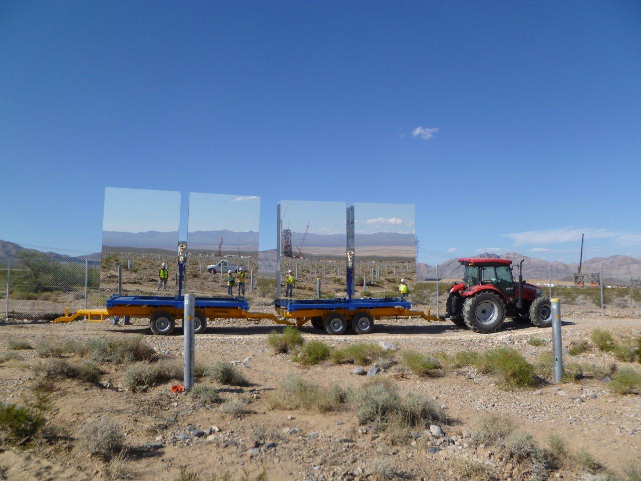 The mirrors are mounted over helisotats which track the sun. These helisotats are installed around the tower and they all comprise the solar field.