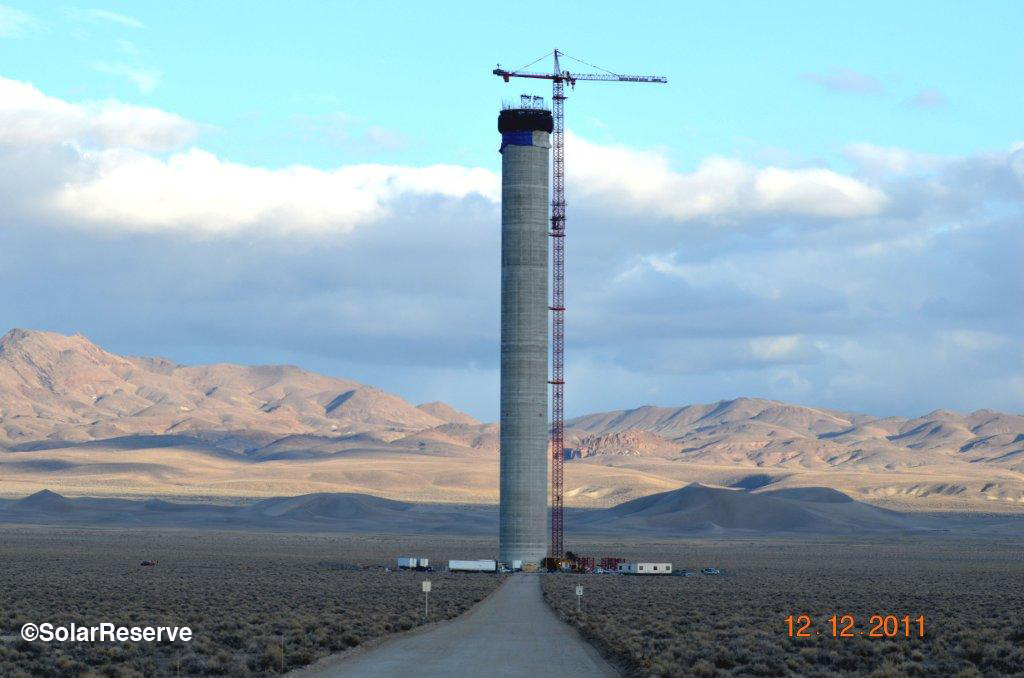 SolarReserve is currently building the Crescent Dunes CSP plant at Nevada, a 110 MW tower type plant with molten salt as HTF and TES.