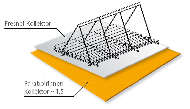 The project "SolSteam" started in August 2013 and has a duration of three years. In the coming year, a demonstration plant with a collector area of 1000 m² will be implemented together with a boiler to deliver steam to a customer at a mass flow rate of about 2 tonne per hour.