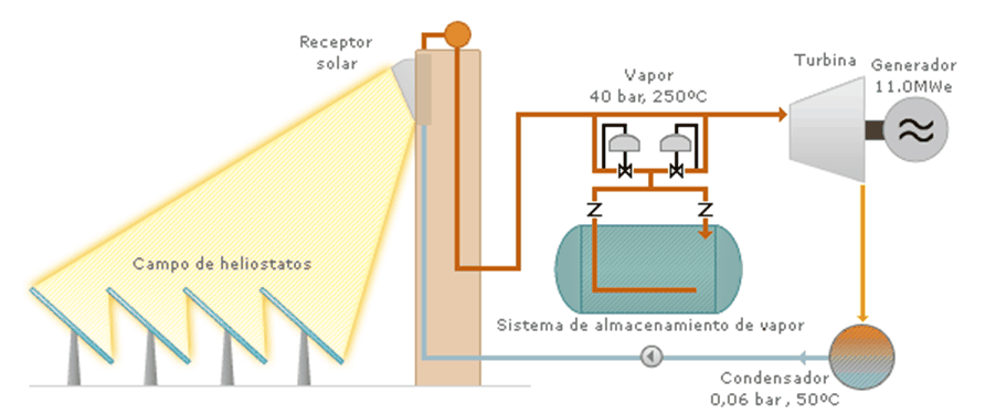 Tower plants can produce steam directly in the receiver and then send it to the turbine, thiis is the case of PS10, PS20 or Ivanpah plants.