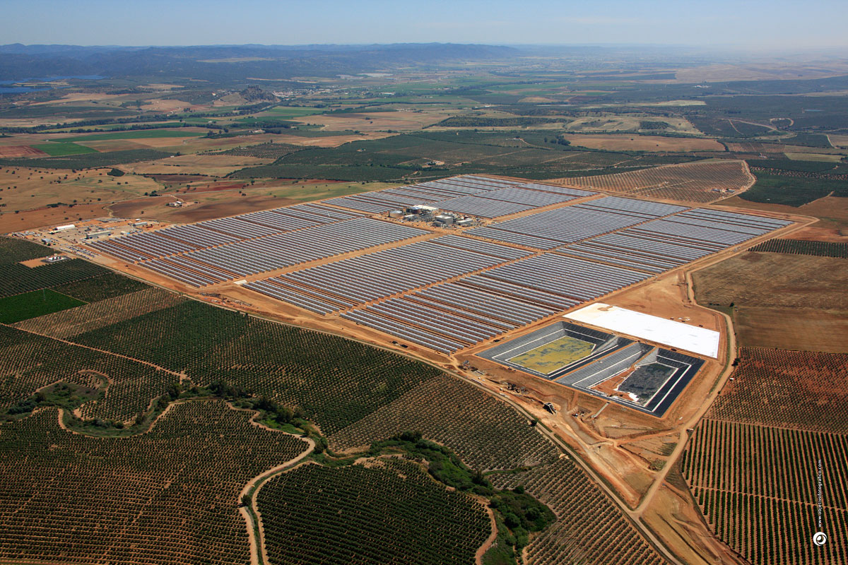 Typical aerial view of a CSP plant (La Africana, Spain)